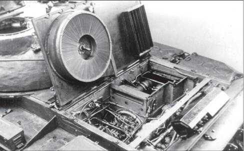 Наибольшим изменениям подверглась крыша моторно-трансмиссионного отделения и кормовой лист бронекорпуса. Крышу сделали из сравнительно тонкого и легкого листа с окнами, на которых разместили жалюзи воздухозаборного устройства. В корме появились отверстия для выброса газов двигателя и воздуха из системы охлаждения. Для повышения живучести эти отверстия прикрыли бронированным колпаком. Двигатели и некоторые агрегаты трансмиссии укрепили на заново разработанной раме, которая монтировалась на бронекорпусе без доработок последнего. Сам двигатель установили продольно, с небольшим сдвигом от оси танка влево. Рядом с ним разместились топливный и масляный насосы, 24 прямоточных циклона системы воздухоочистки, компрессор, стартер-генератор и т.п.