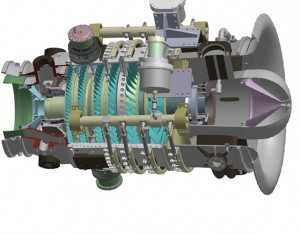 Турбина низкого давления – это свободная турбина, вращающая вентилятор. Она тоже вращается под воздействием расширенных газов Две турбины не связаны между собой механически и работают независимо одна от другой. Вал второй турбины при этом обычно находится внутри вала первой, но есть конструкции, предусматривающие наличие трех валов.