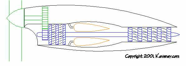 Или же немного по-другому: можно при тех же энергетических затратах пропускать через двигатель значительно большую массу воздуха, но с малой скоростью ее истечения. При этом получим большую тягу с меньшими удельными параметрами расхода топлива. То есть суть дела та же :-)…