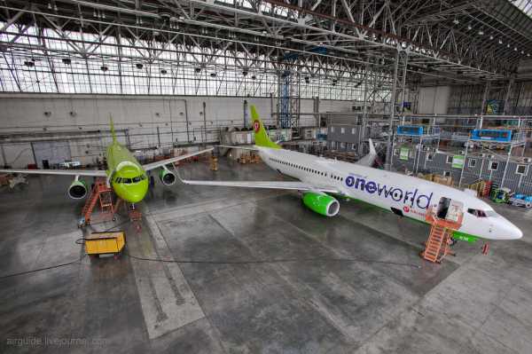 Пока шарклеты готовят к выносу, на базу закатывают самолет А320 S7 — вон он вдалеке красивый зеленый.