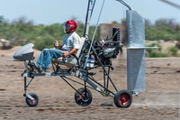 Подпись к фото,Сюй Бинь учился летать, прицепив свой автожир веревкой к движущемуся автомобилю. Теперь он — главный летчик-испытатель аппаратов, построенных местными аэронавтами