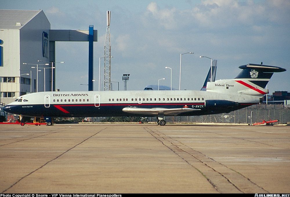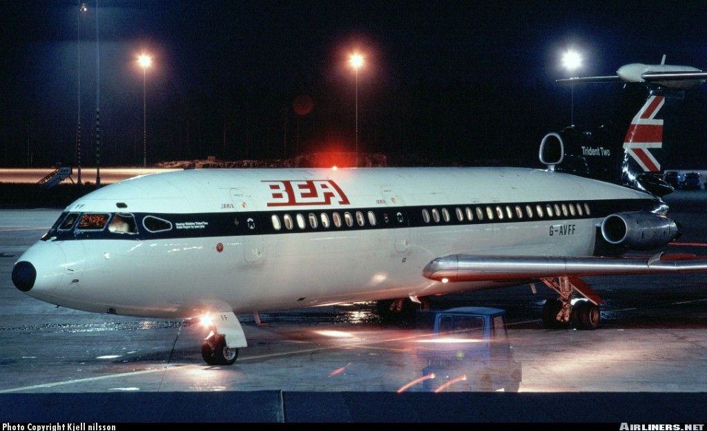 Наш самолет с бортовым номером G-AVFB(также были 5B-DAC ) 1967 года выпуска Hawker Siddeley HS-121 Trident 2E C/N 2141,двигатели Rolls-Royce Spey 512-5W.