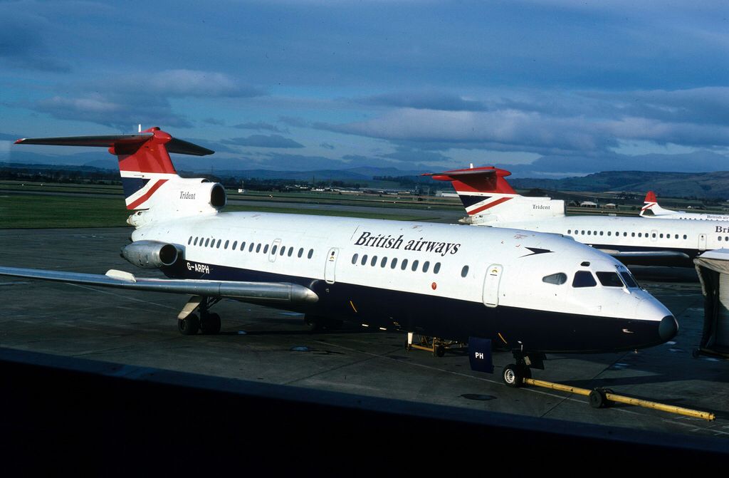 общий вид на стоянку пассажирских самолетов в Даксфорде. Трайдент посередине.