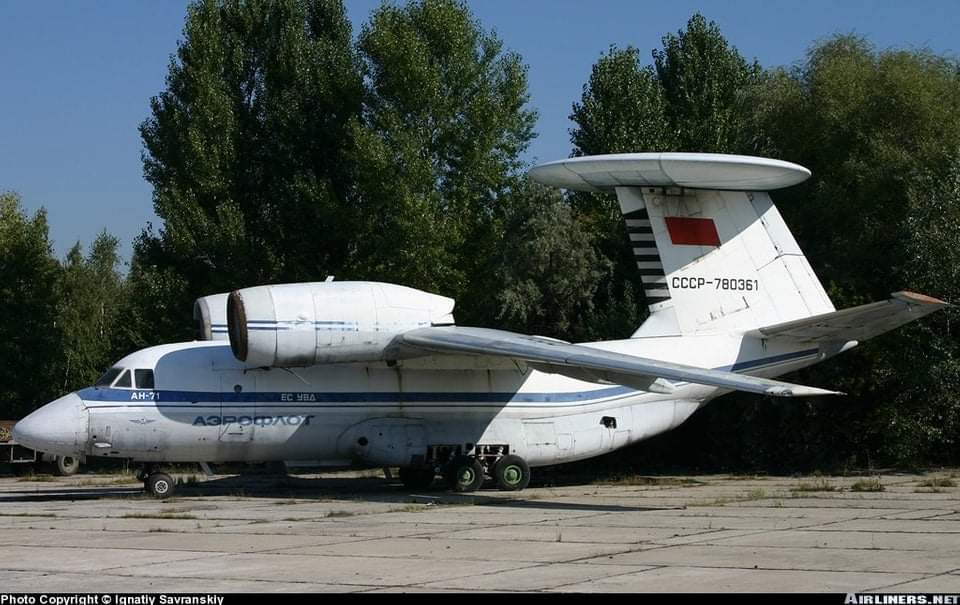 Из-за значительных проблем с созданием радиотехнического комплекса «Факел» в марте 1983 г. разработка соответствующего варианта конструкции самолета была остановлена.В октябре 1984 года в связи с отказом флота от проектно-палубного варианта самолета дальнего радиолокационного обнаружения и управления Ан-71 продолжались работы над Як-44Э без подъемных двигателей, оснащенным турбовинтовыми двигателями. и антенна РЛС А-700 над фюзеляжем на пилоне. В сентябре 1988 г. был подготовлен аванпроект новой версии самолета.