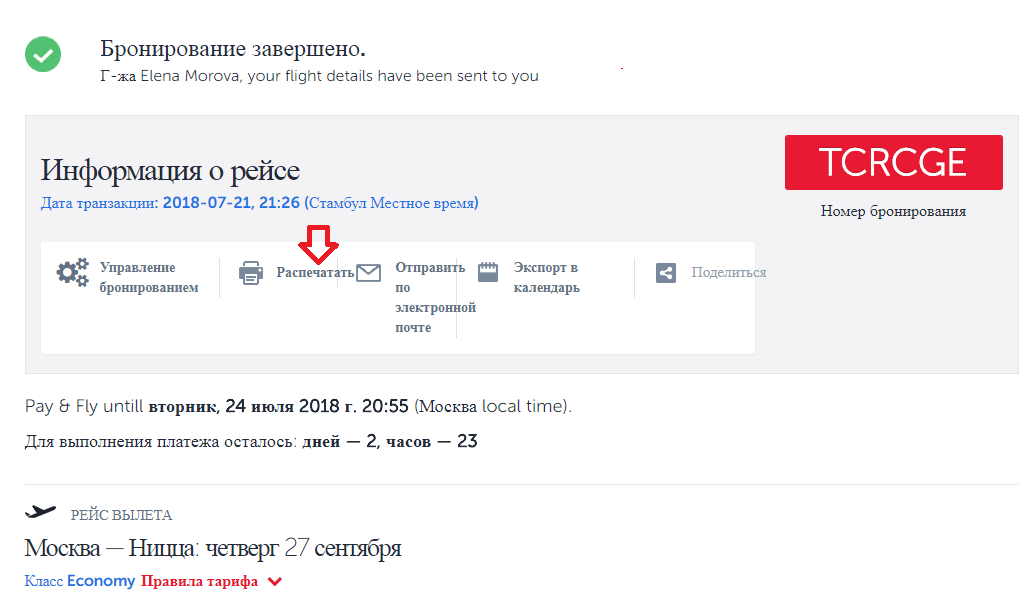 Полученную в электронном виде маршрут-квитанцию останется только распечатать – это документ, который принимают посольства. Срок действия брони может разниться, однако его достаточно, чтобы успеть получить визу.